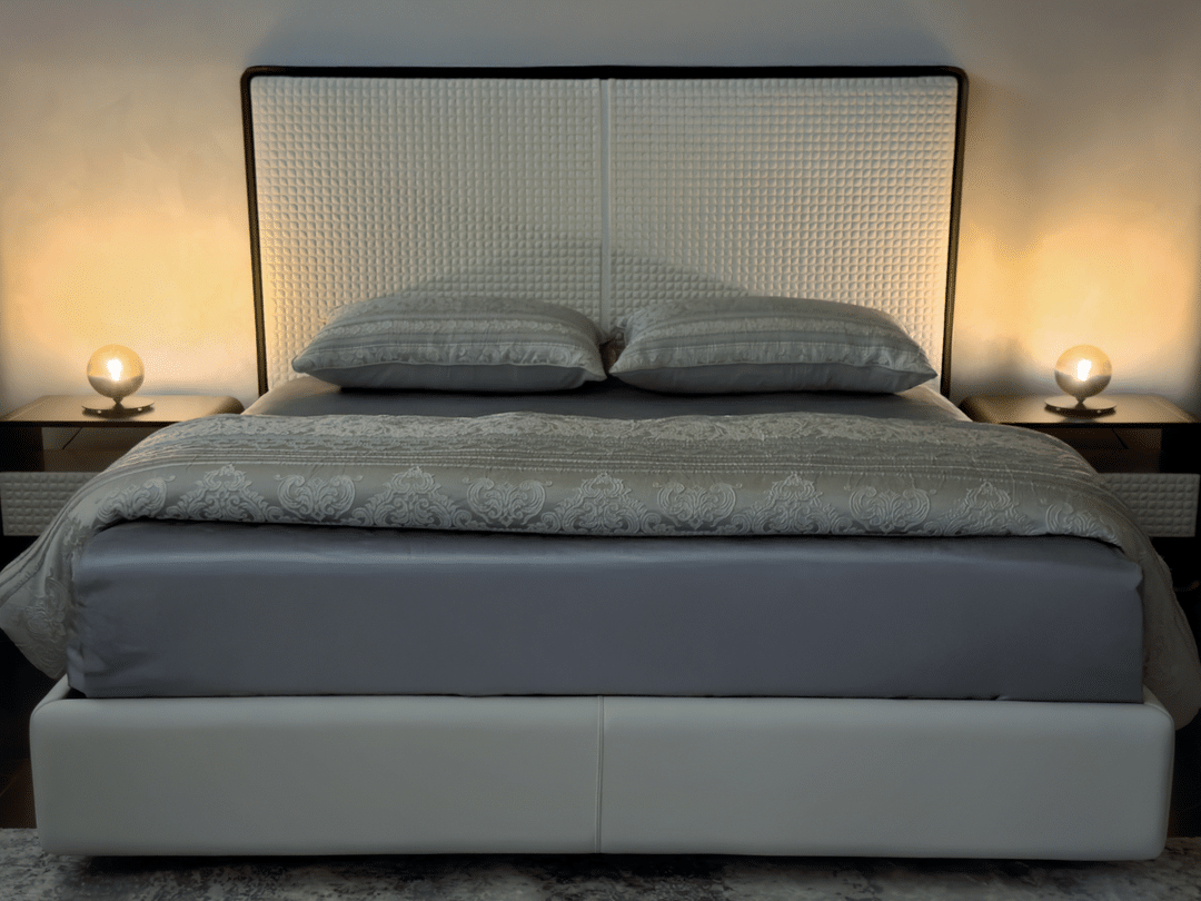 -Headboard Upholstery: Bianco Leather (Fly Quilting)